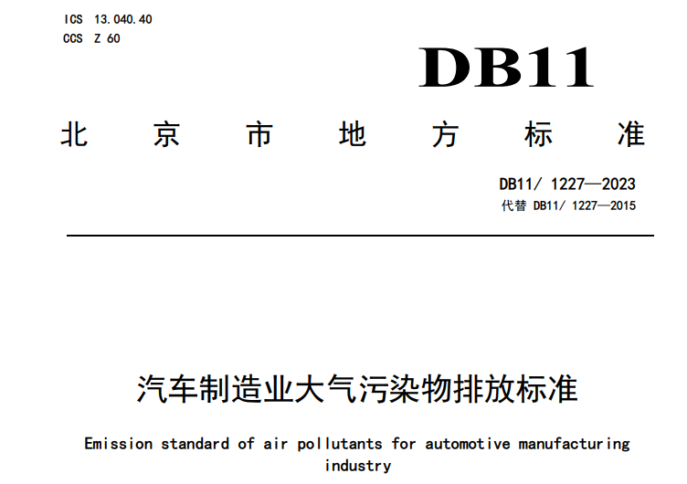 北京市市場(chǎng)監督管理局和北京市生態(tài)環(huán)境局4月24日發(fā)布了地方標準《汽車(chē)制造業(yè)大氣污染物排放標準》(DB11/ 1227-2023)。