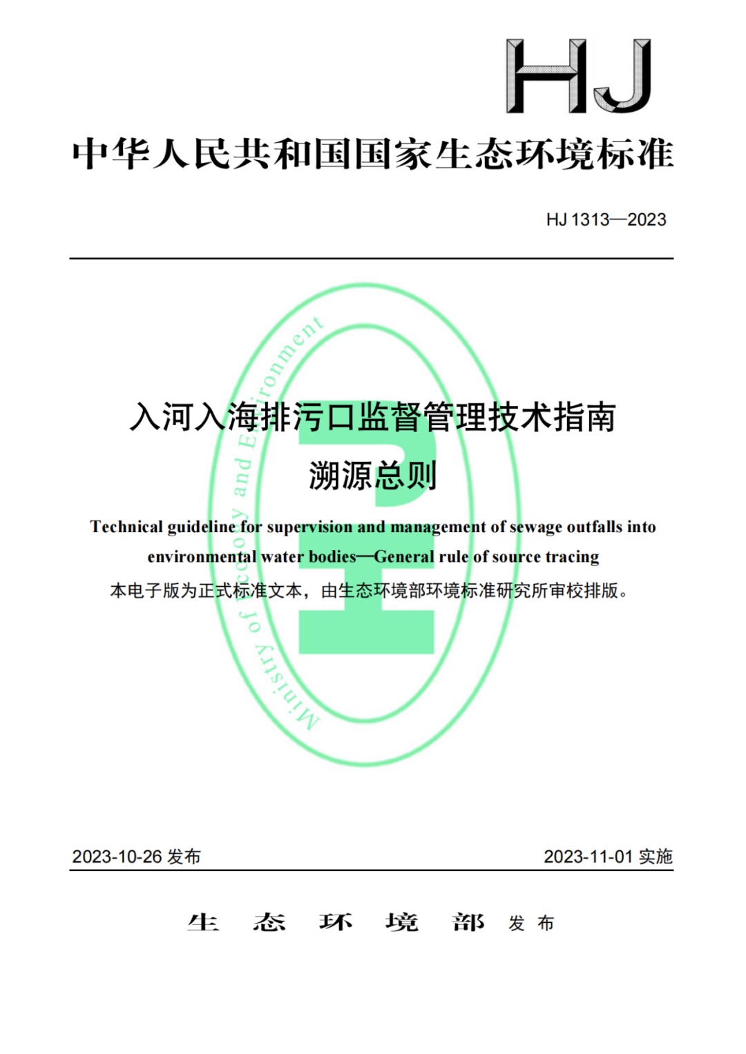 生態(tài)環(huán)境部發(fā)布《入河入海排污口監督管理技術(shù)指南 溯源總則》等3項入河入海排污口監督管理技術(shù)標準(圖文)