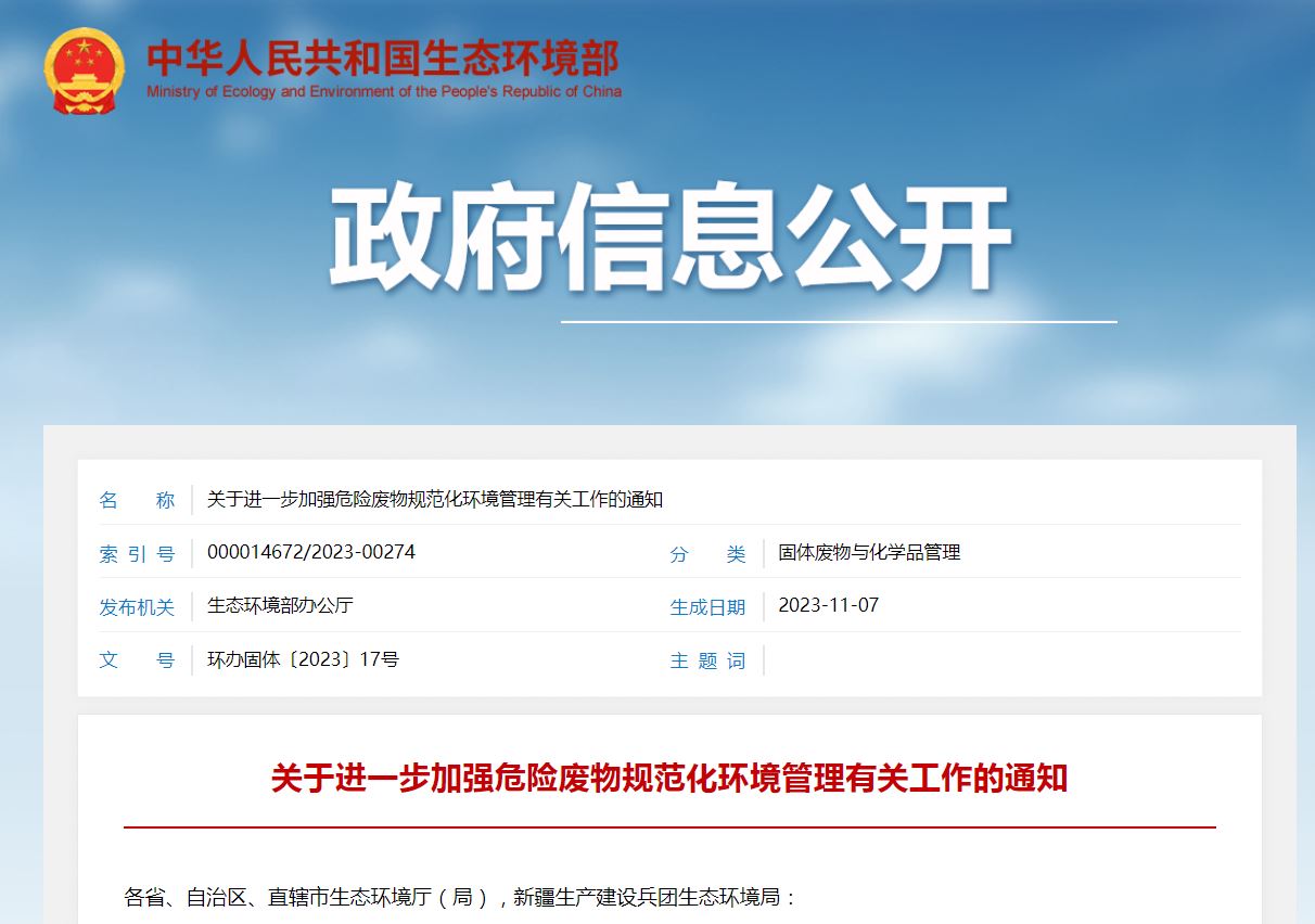 生態(tài)環(huán)境部發(fā)布通知深化危險廢物規范化評估工作,強化全過(guò)程信息化環(huán)境管理,持續提升規范化管理水平,嚴密防控環(huán)境風(fēng)險(圖文)