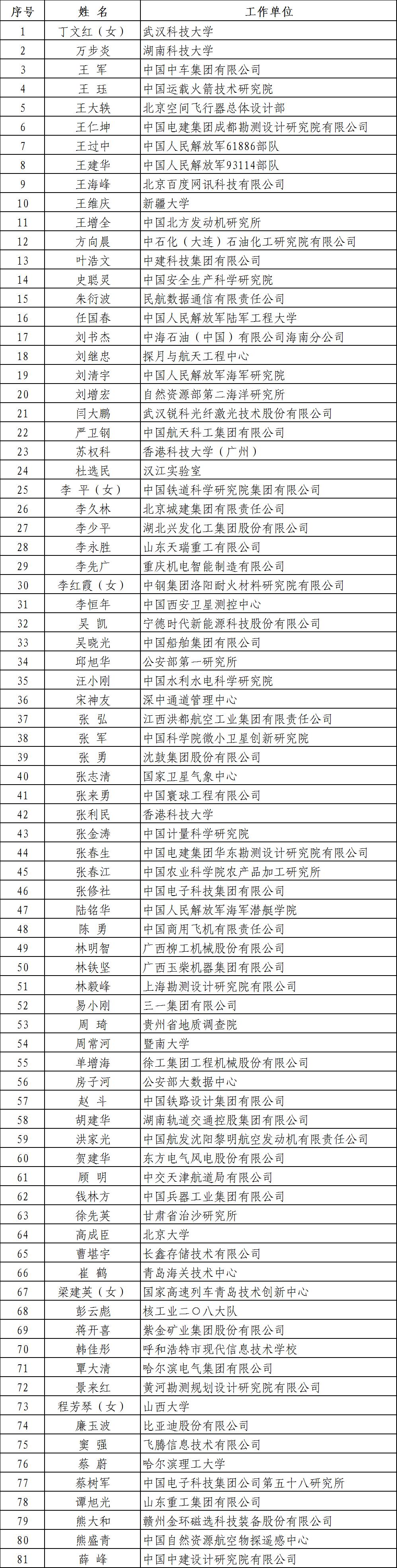 一、國家卓越工程師(81人)