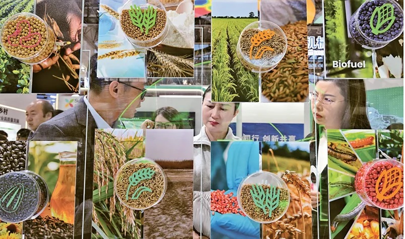 各地積極發(fā)展新質(zhì)生產(chǎn)力,為高質(zhì)量發(fā)展注入新動(dòng)能、塑造新優(yōu)勢。圖為2023年11月30日,在首屆鏈博會(huì )綠色農業(yè)鏈展區,參觀(guān)者在展臺前了解種子研發(fā)情況。當日,這里聚焦農業(yè)產(chǎn)業(yè)鏈的核心環(huán)節、關(guān)鍵技術(shù)及產(chǎn)品,重點(diǎn)展示種子研發(fā)、智慧農業(yè)應用、現代智能化農機設備和富有地域特色的農業(yè)加工品,并配套展示農業(yè)相關(guān)的金融、物流等服務(wù),為觀(guān)眾展現出一幅共創(chuàng )綠色農業(yè)未來(lái)的新圖景。新華社記者 李賀/攝