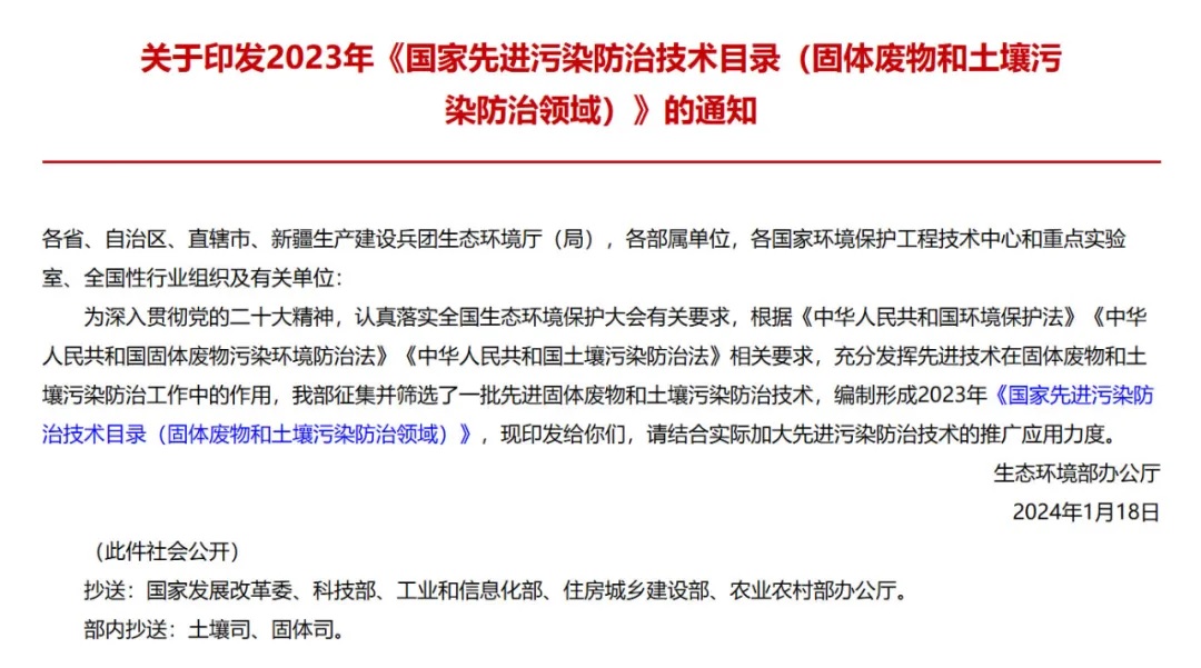 最近一次發(fā)布這個(gè)目錄,是在今年1月,印發(fā)的是2023年《國家先進(jìn)污染防治技術(shù)目錄(固體廢物和土壤污染防治領(lǐng)域)》,共有23項。