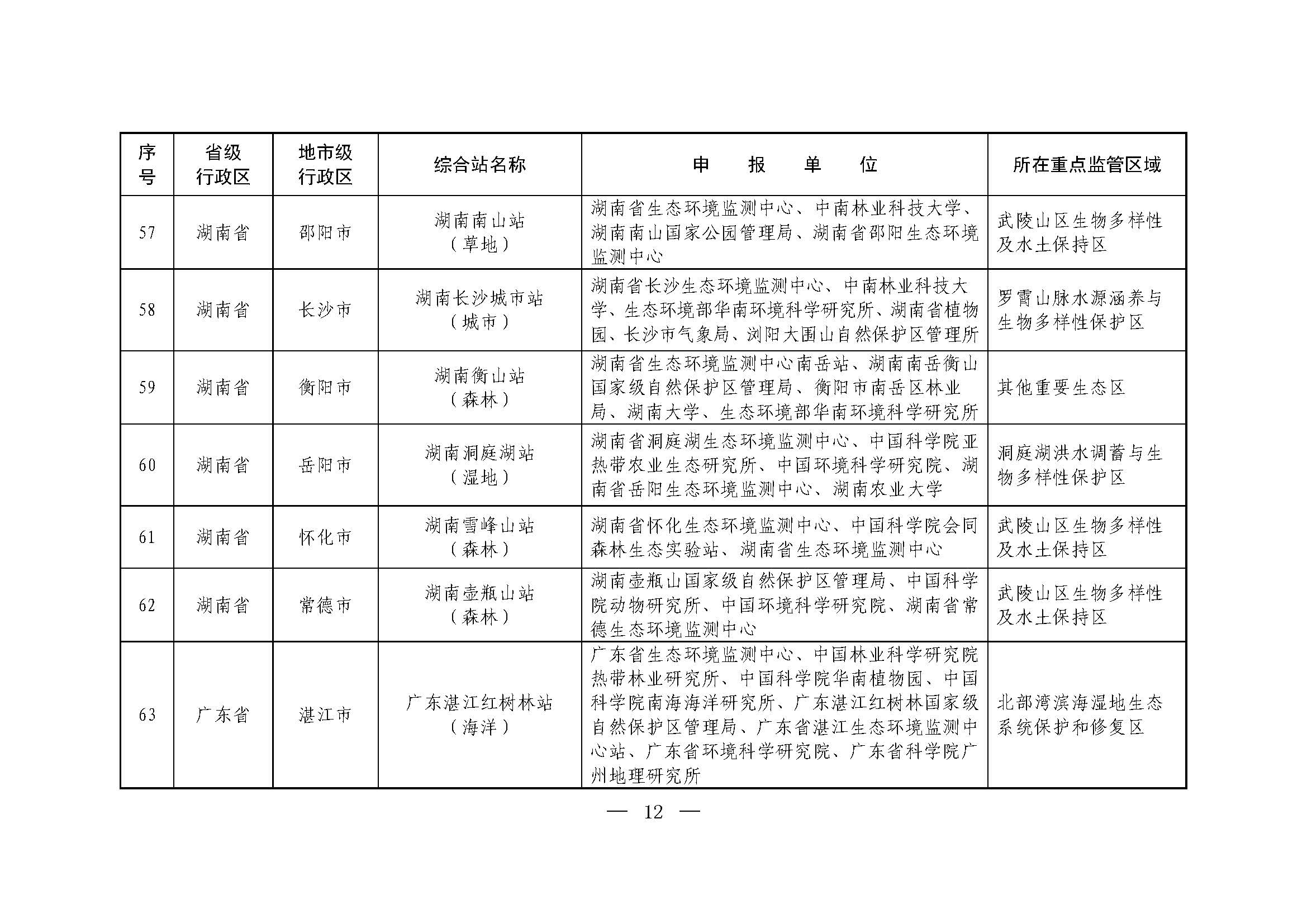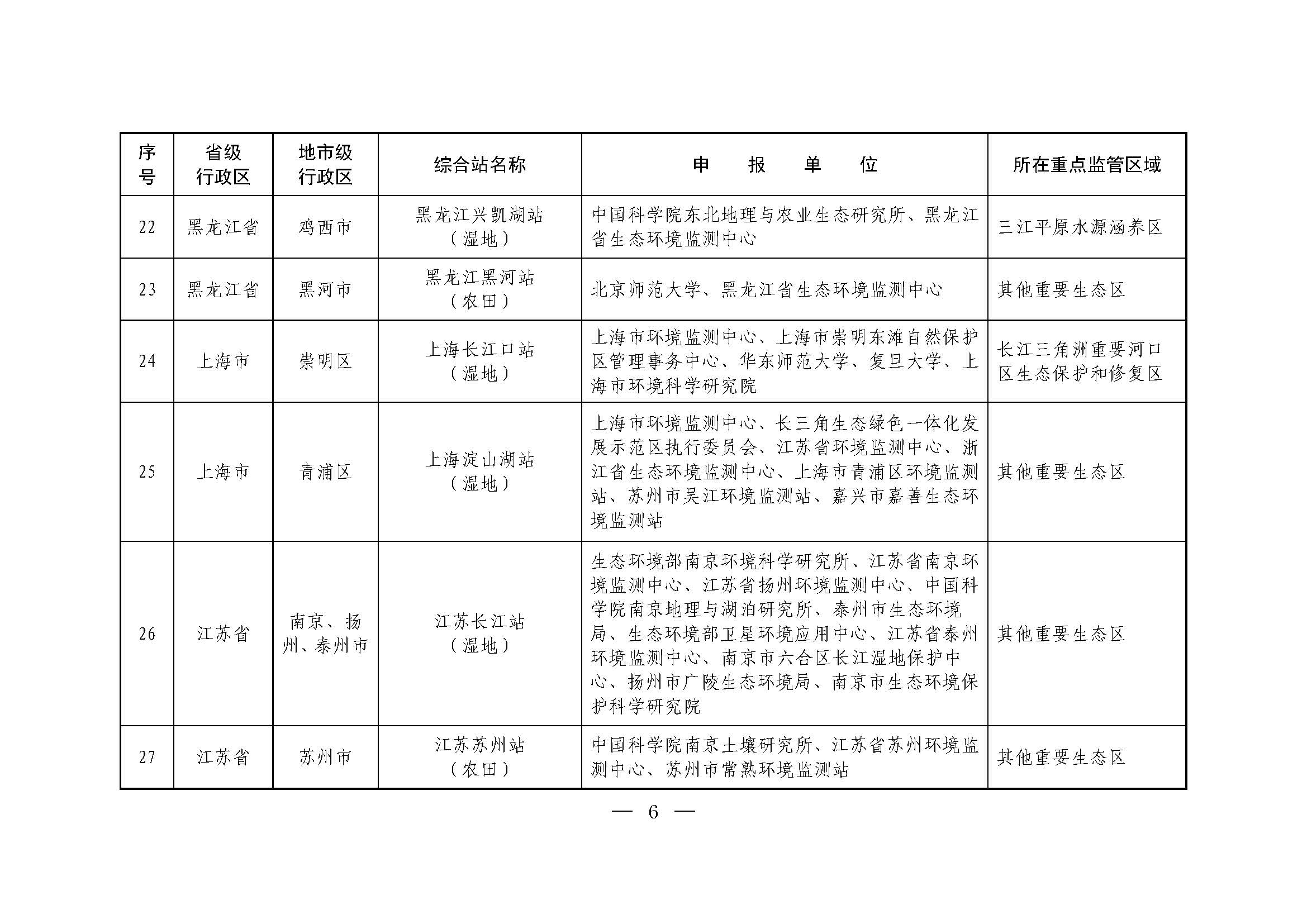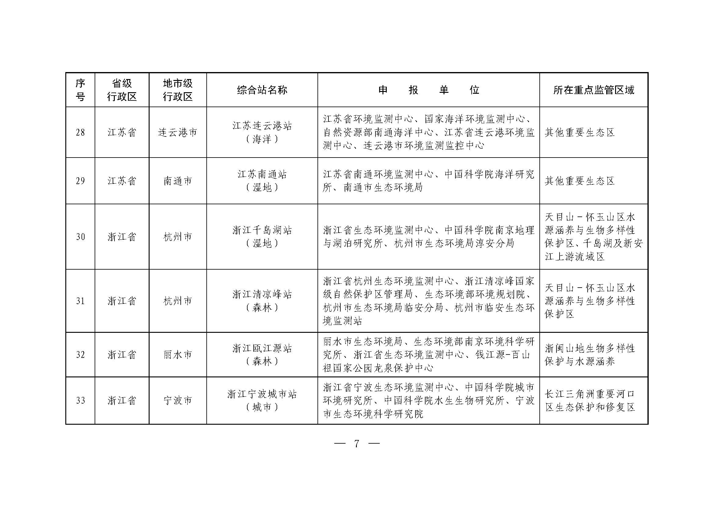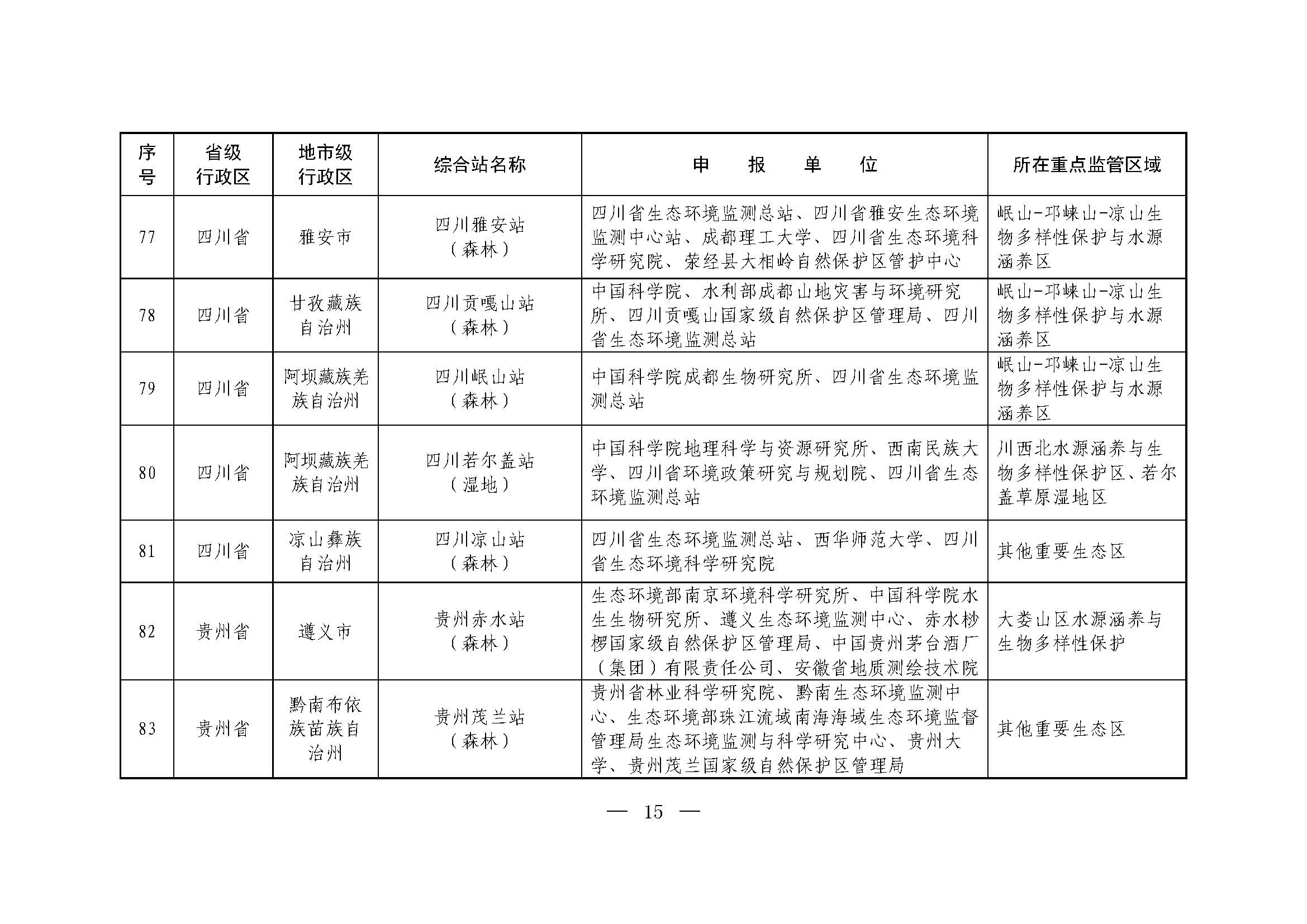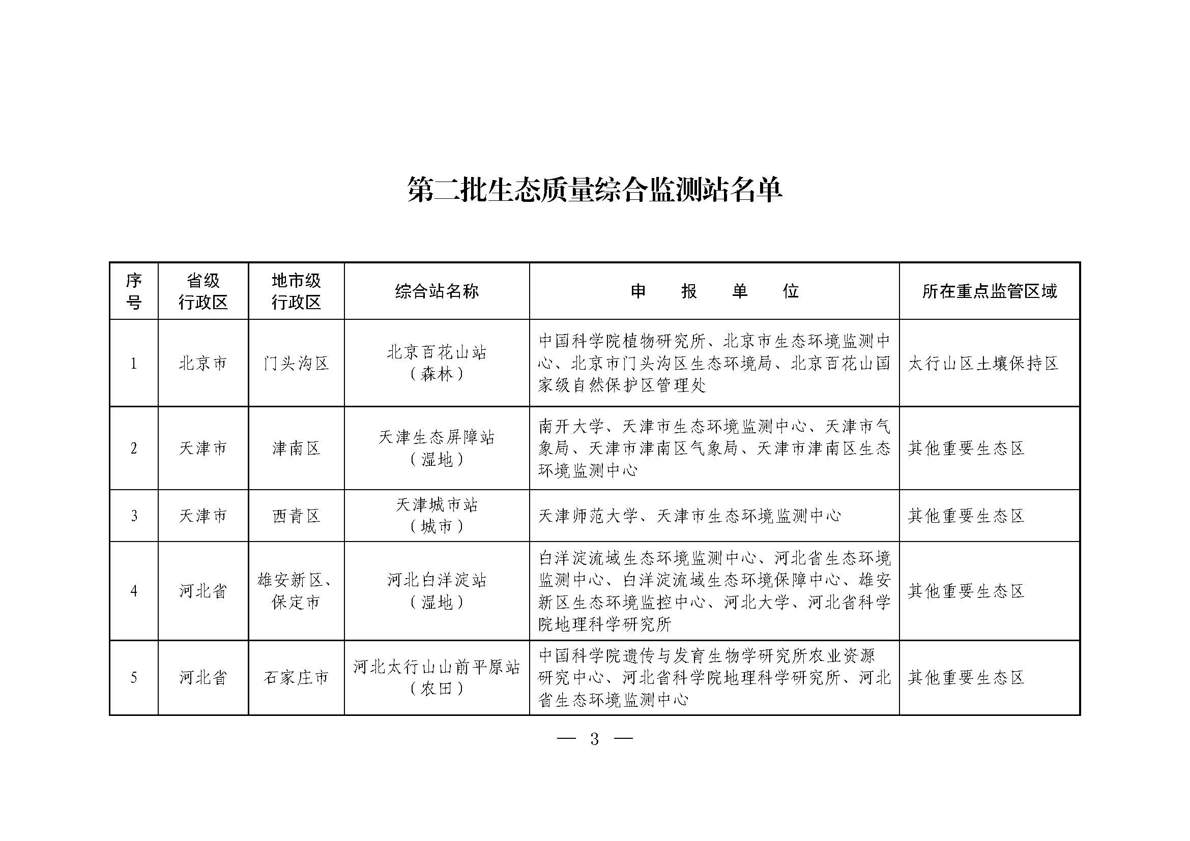 第二批生態(tài)質(zhì)量綜合監測站名單