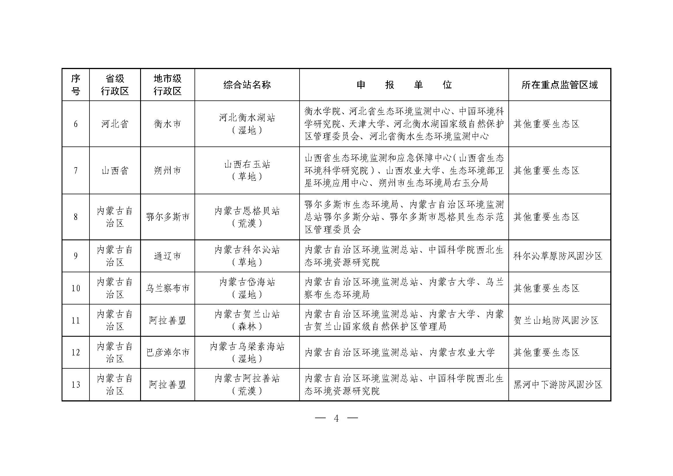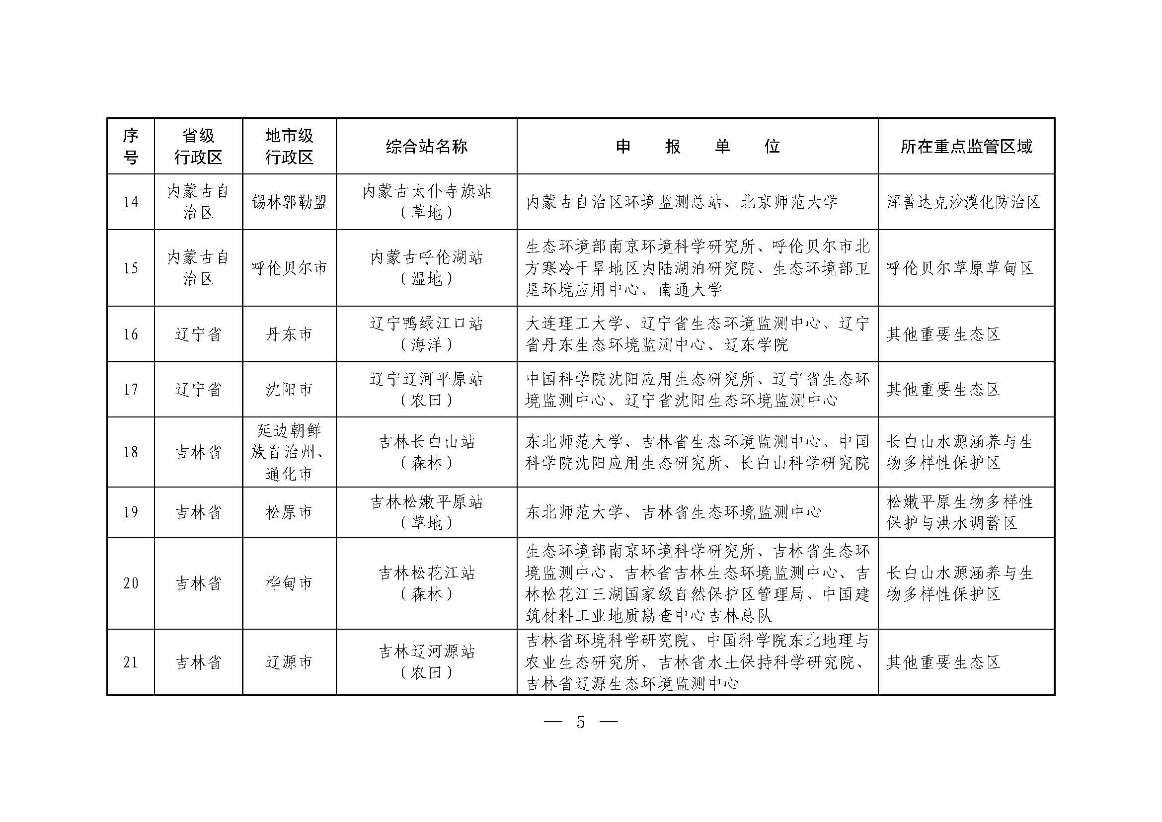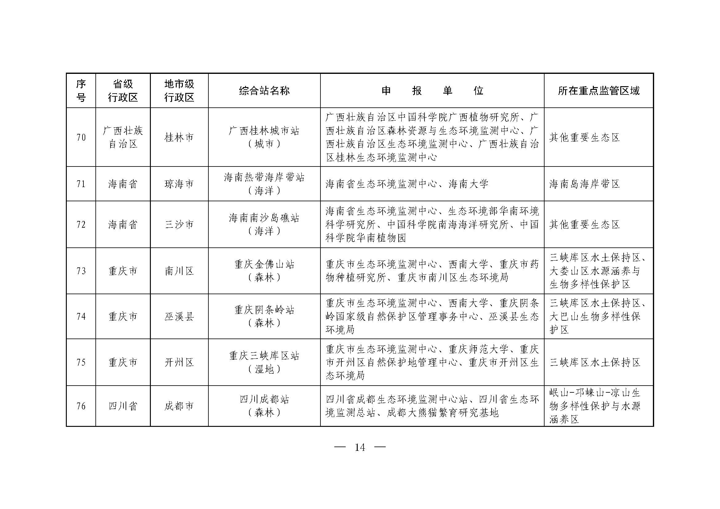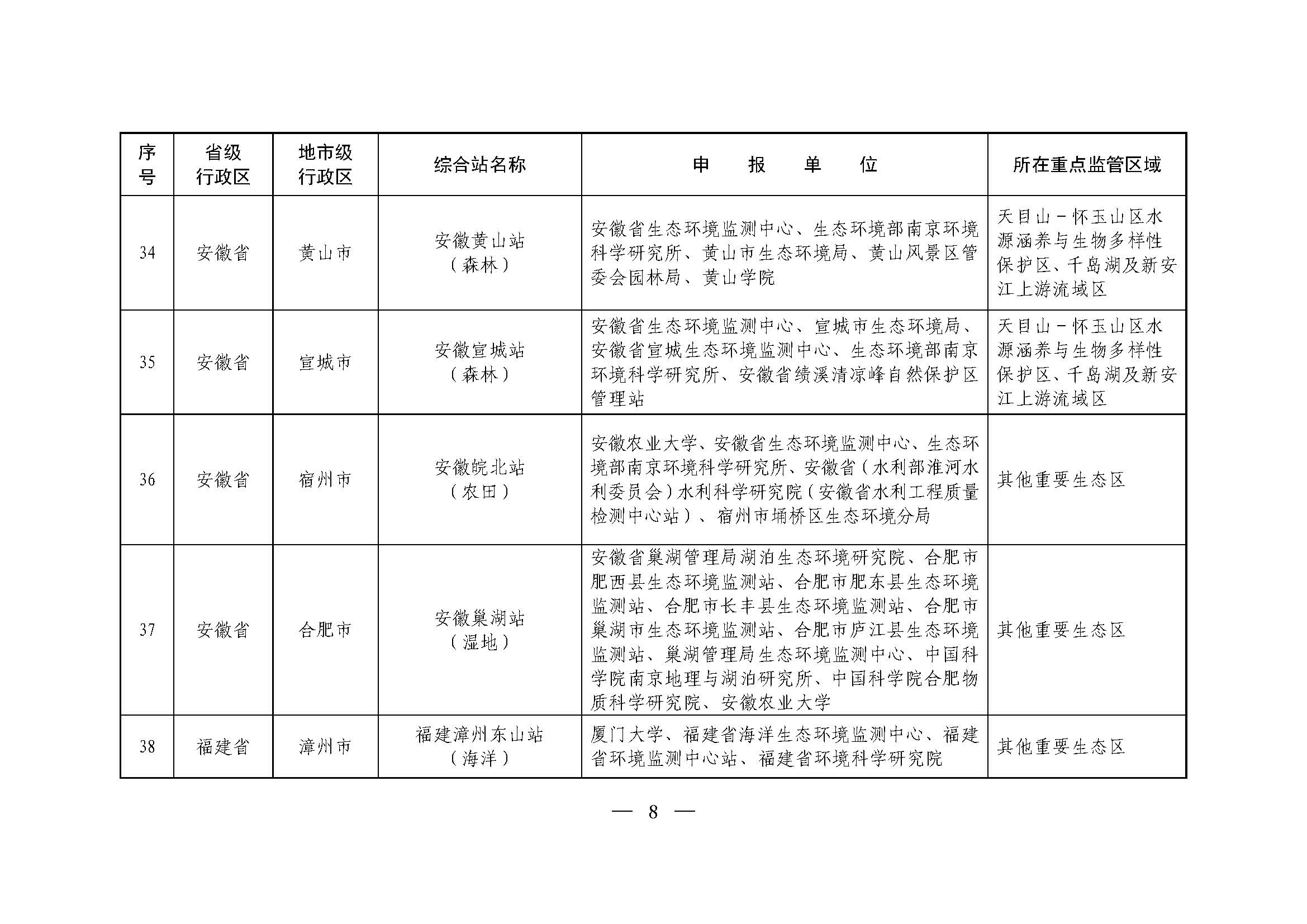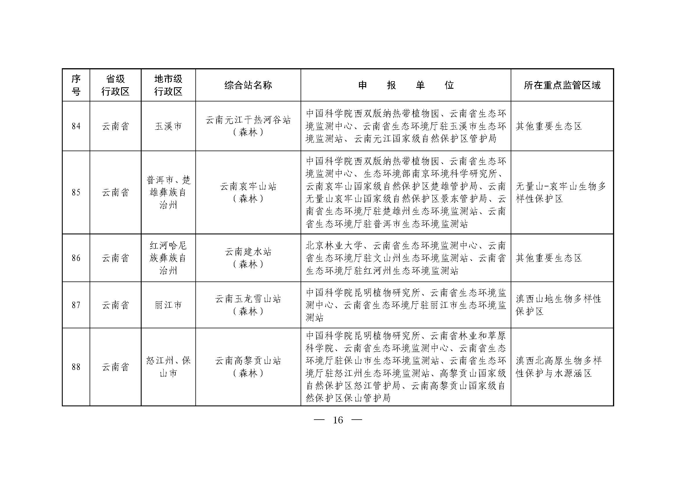 第二批生態(tài)質(zhì)量綜合監測站名單