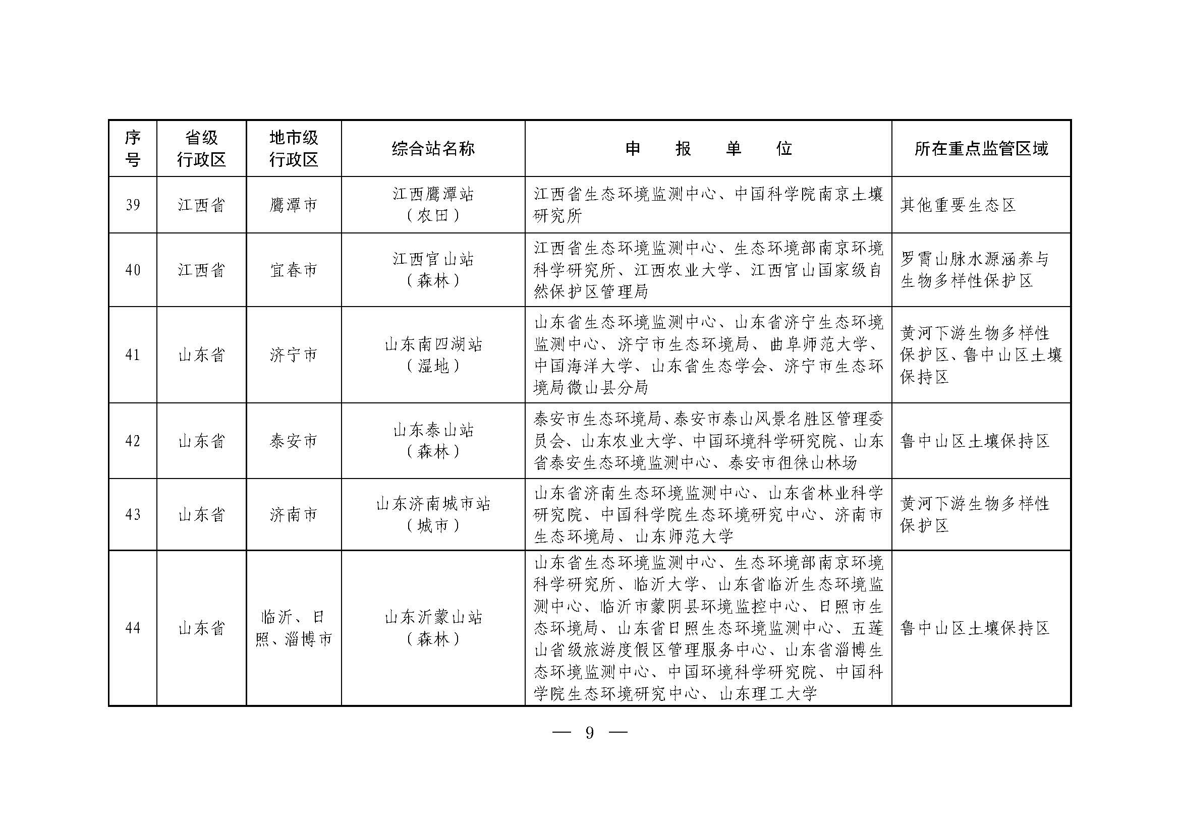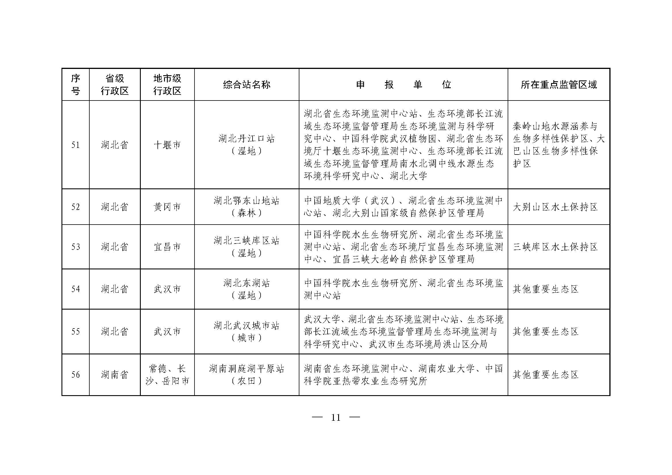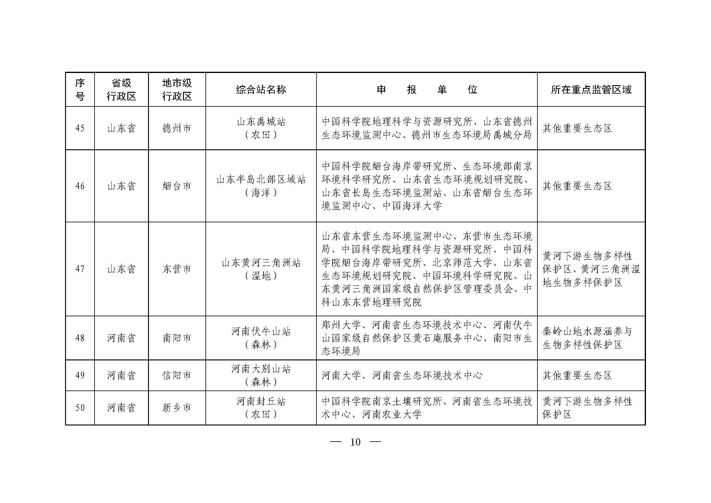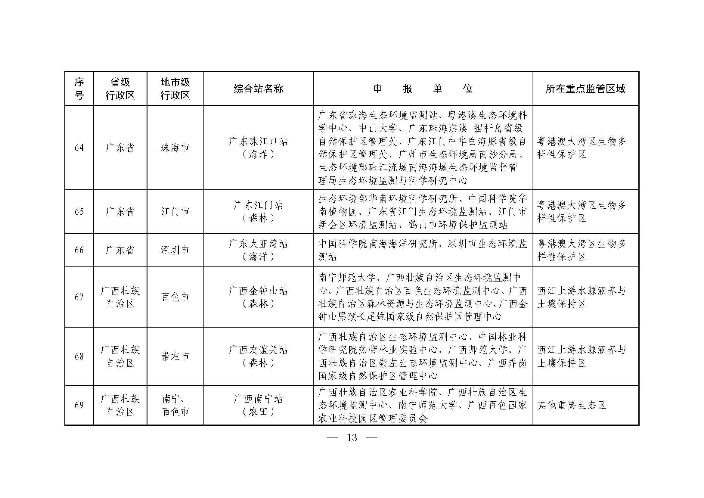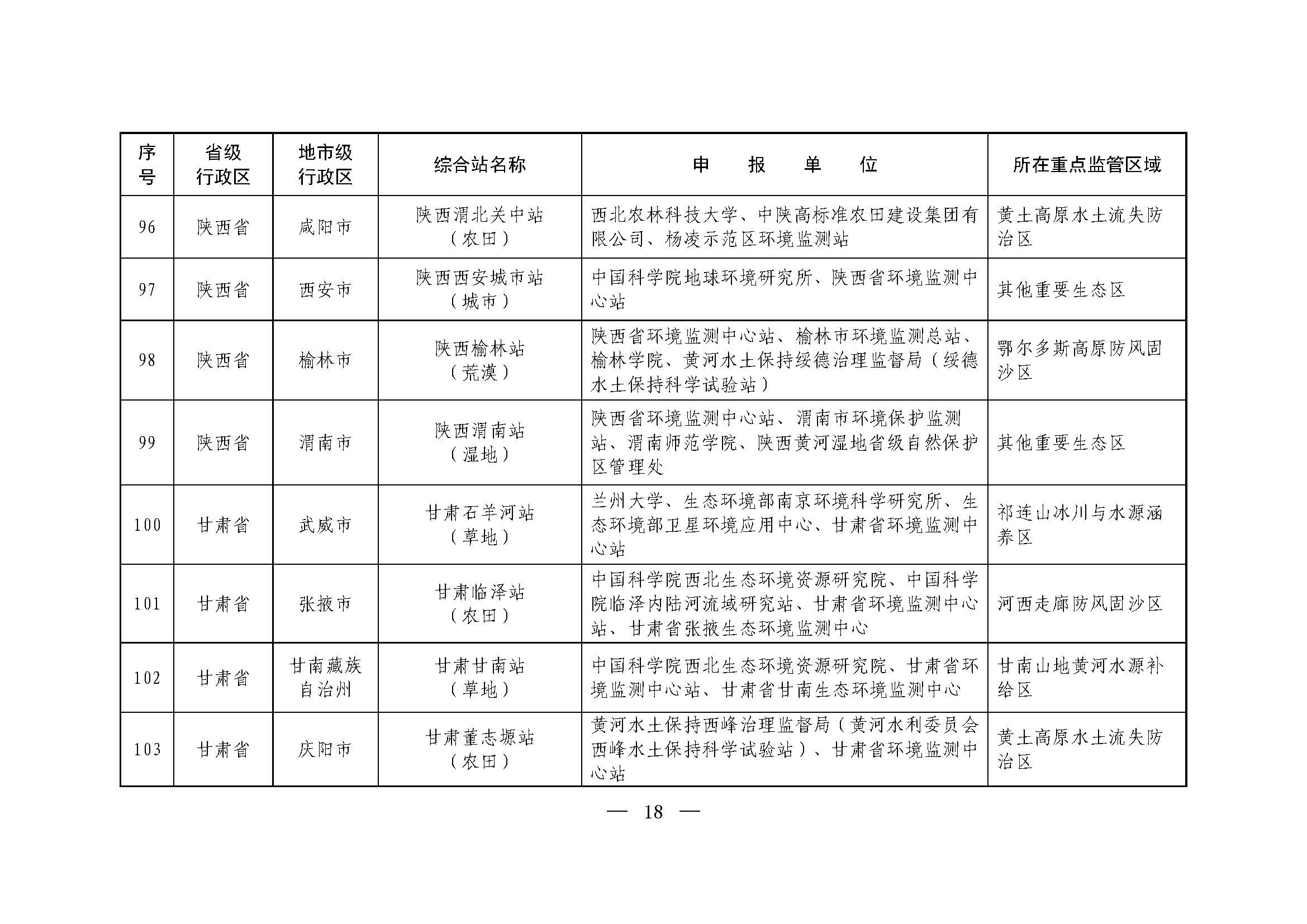 第二批生態(tài)質(zhì)量綜合監測站名單