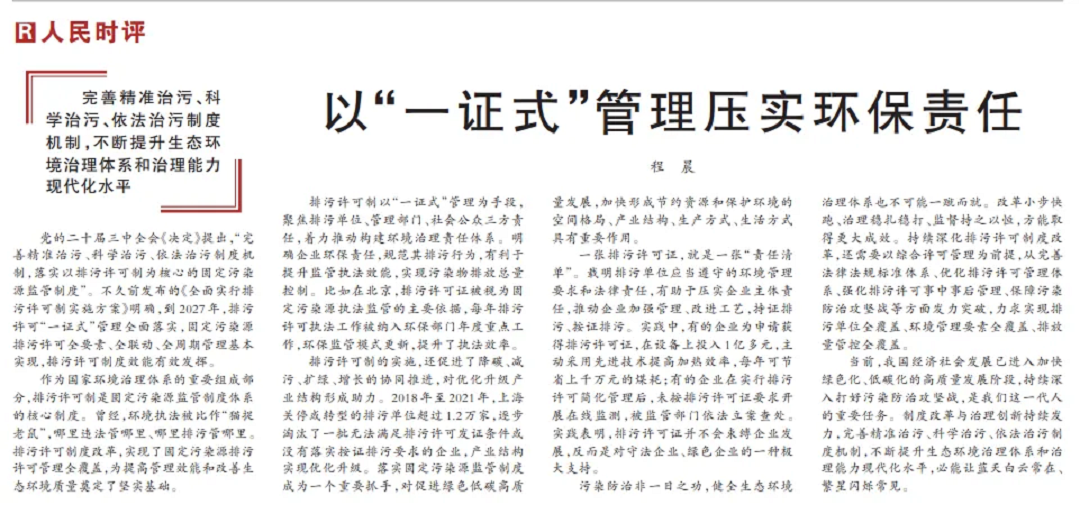 人民時(shí)評:以“一證式”管理壓實(shí)環(huán)保責任