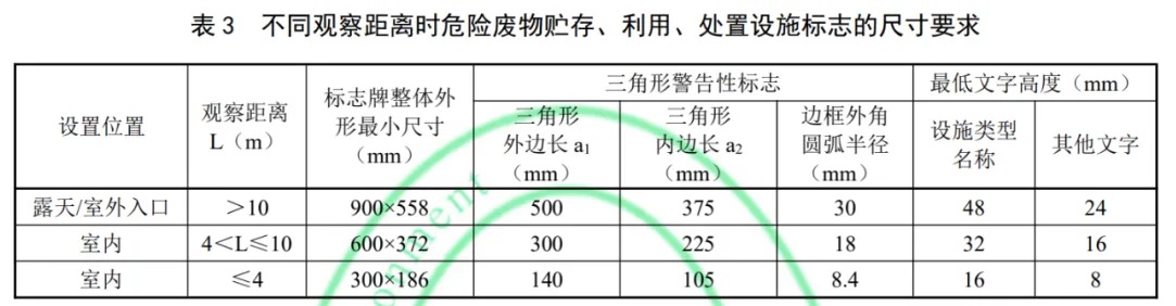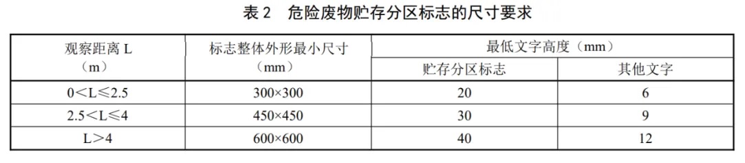 【圖 危險廢物貯存、利用、處置設施標志的尺寸要求】
