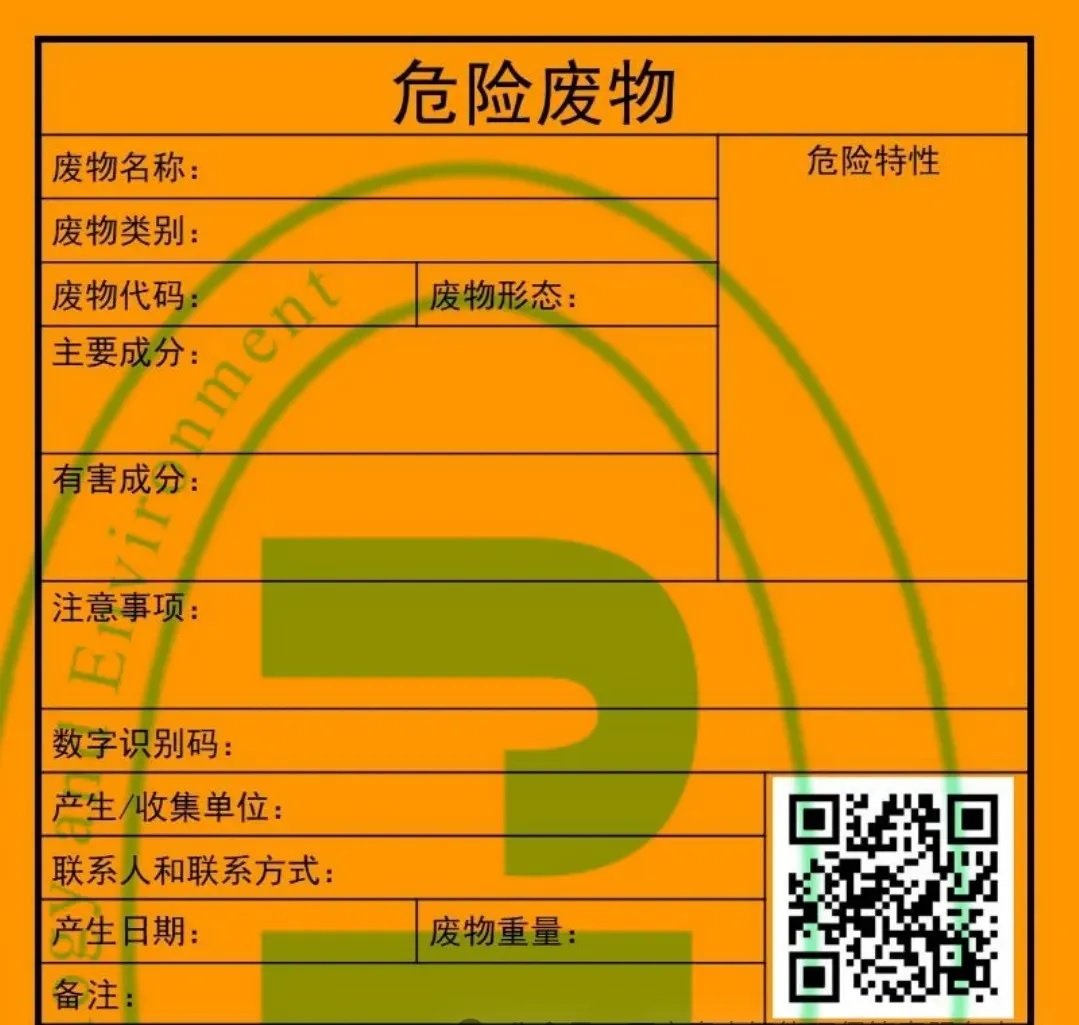 3. 數字識別碼應一物一碼”,二維碼的編碼數據結構中應包含數字識別碼的內容,信息服務(wù)系統所含信息宜包含標簽中設置的信息。危險廢物經(jīng)營(yíng)活動(dòng)的單位可利用電子標簽等物聯(lián)網(wǎng)技術(shù)對危險廢物進(jìn)行信息化管理??呻S標簽打印,也可另外張貼。
