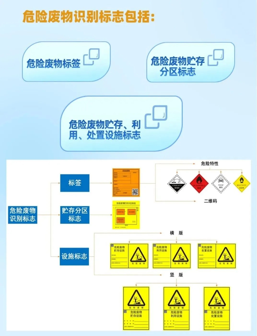 設置要求方面,危險廢物容器或包裝物種類(lèi)繁多,《規范》針對箱類(lèi)包裝、袋類(lèi)包裝、桶類(lèi)包裝等分別提出了相應的設置要求,標簽設置的總體原則是應設置在容器或包裝物的明顯位置。