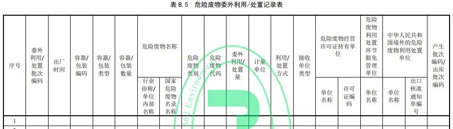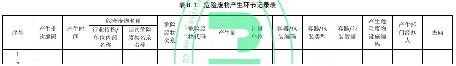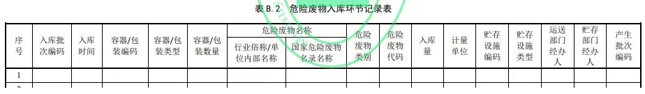 2)產(chǎn)生危險廢物的單位應根據危險廢物產(chǎn)生、貯存、利用、處置等環(huán)節的動(dòng)態(tài)流向,如實(shí)建立各環(huán)節的危險廢物管理臺賬,記錄內容參見(jiàn)附錄B。