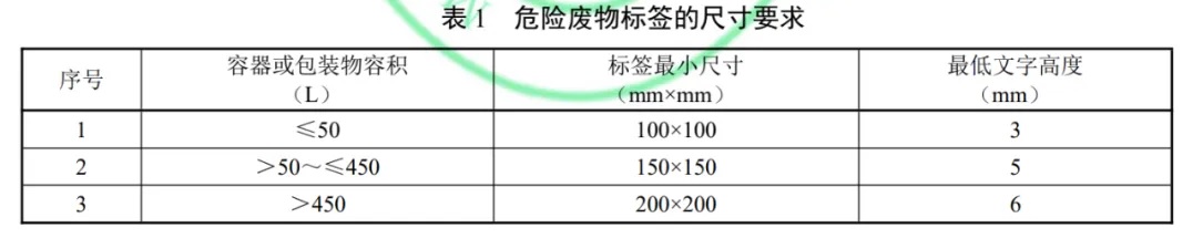 制作要求方面,根據危險廢物容器或包裝物的容積大小,《規范》分別提出了不同情形下標簽的最小尺寸和最低文字高度,企業(yè)可按照推薦尺寸制作,或根據實(shí)際需要進(jìn)行放大處理。