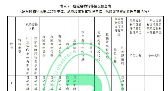 危險廢物轉移情況填寫(xiě)內容參見(jiàn)附錄A.7,填寫(xiě)應滿(mǎn)足以下要求。