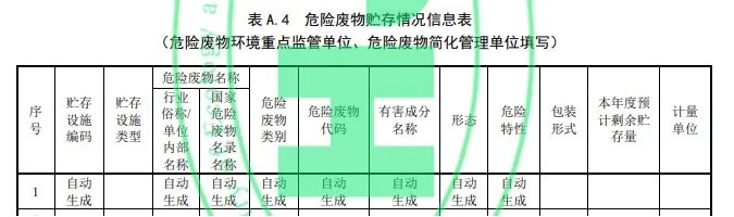 危險廢物貯存情況填寫(xiě)內容參見(jiàn)表A.4,填寫(xiě)應滿(mǎn)足以下要求。