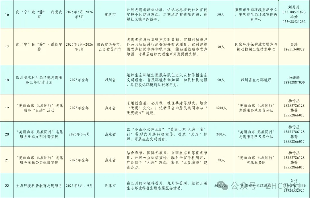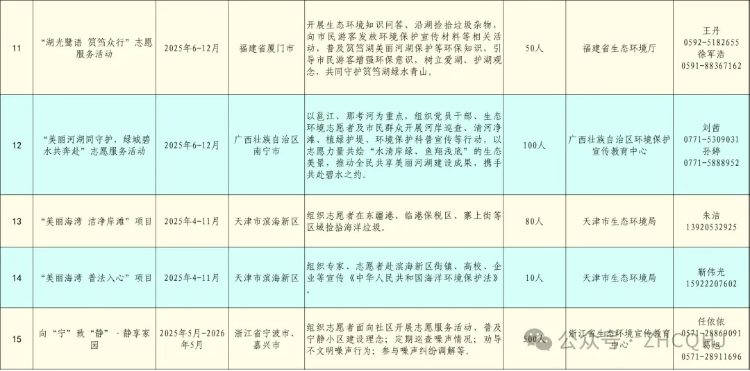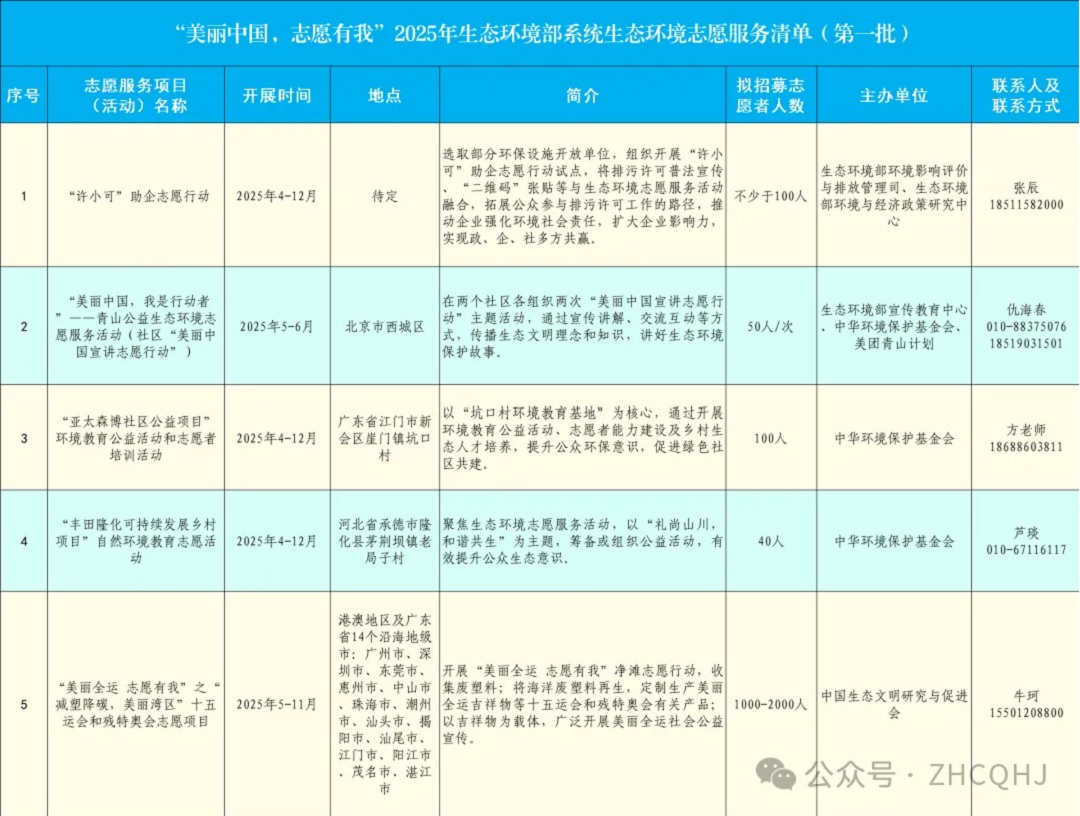 以下為《“美麗中國,志愿有我”2025年生態(tài)環(huán)境部系統生態(tài)環(huán)境志愿服務(wù)清單(第一批)》,歡迎您根據個(gè)人興趣與時(shí)間安排,選擇心儀的項目報名參與。讓我們攜手同行,以實(shí)際行動(dòng)為美麗中國建設添磚加瓦,共同開(kāi)啟這段環(huán)保之旅吧!