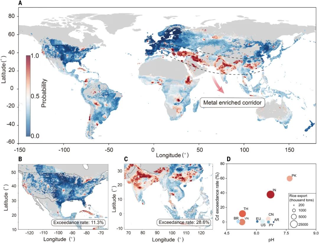 全球土壤有毒金屬污染超出農業(yè)閾值(AT)分布情況