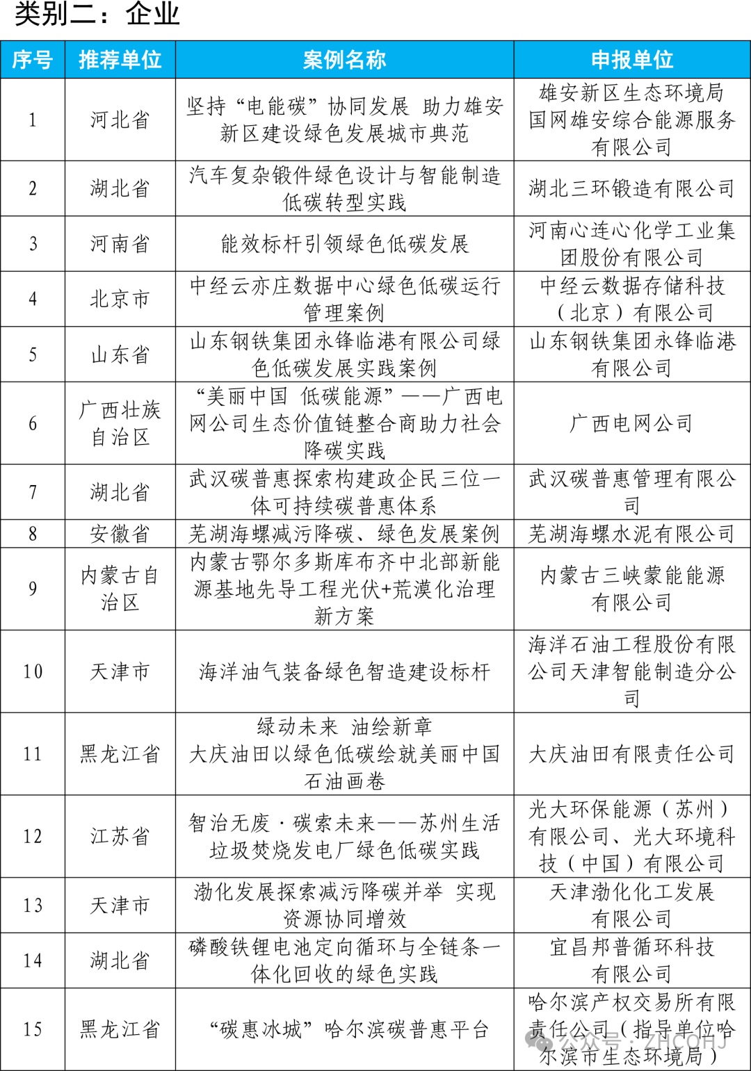 生態(tài)環(huán)境部發(fā)布2025年綠色低碳典型案例征集活動(dòng)獲選名單