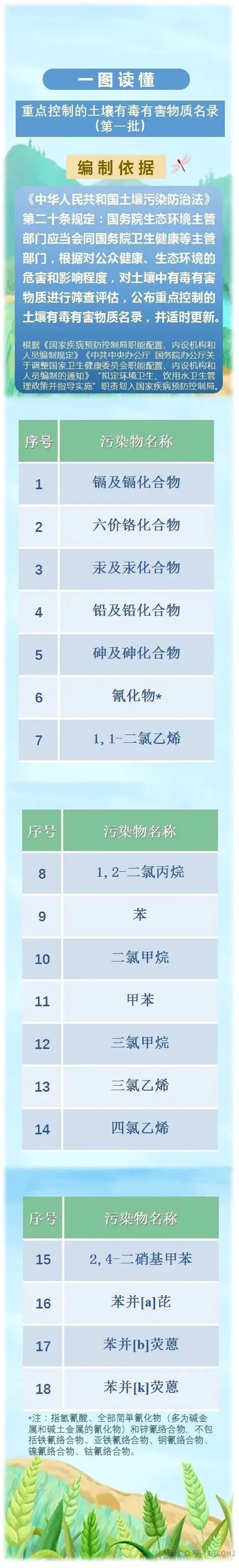 一圖讀懂 | 《重點(diǎn)控制的土壤有毒有害物質(zhì)名錄(第一批)》