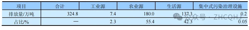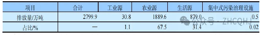 2024年,其中,工業(yè)源廢水中氨氮排放量為1.0萬(wàn)噸,占1.0%;農業(yè)源氨氮排放量為29.3萬(wàn)噸,占27.7%;生活源污水中氨氮排放量為75.5萬(wàn)噸,占71.3%;集中式污染治理設施廢水(含滲濾液)中氨氮排放量為0.1萬(wàn)噸,占0.1%。2024年全國及分源氨氮排放情況見(jiàn)表2-2。