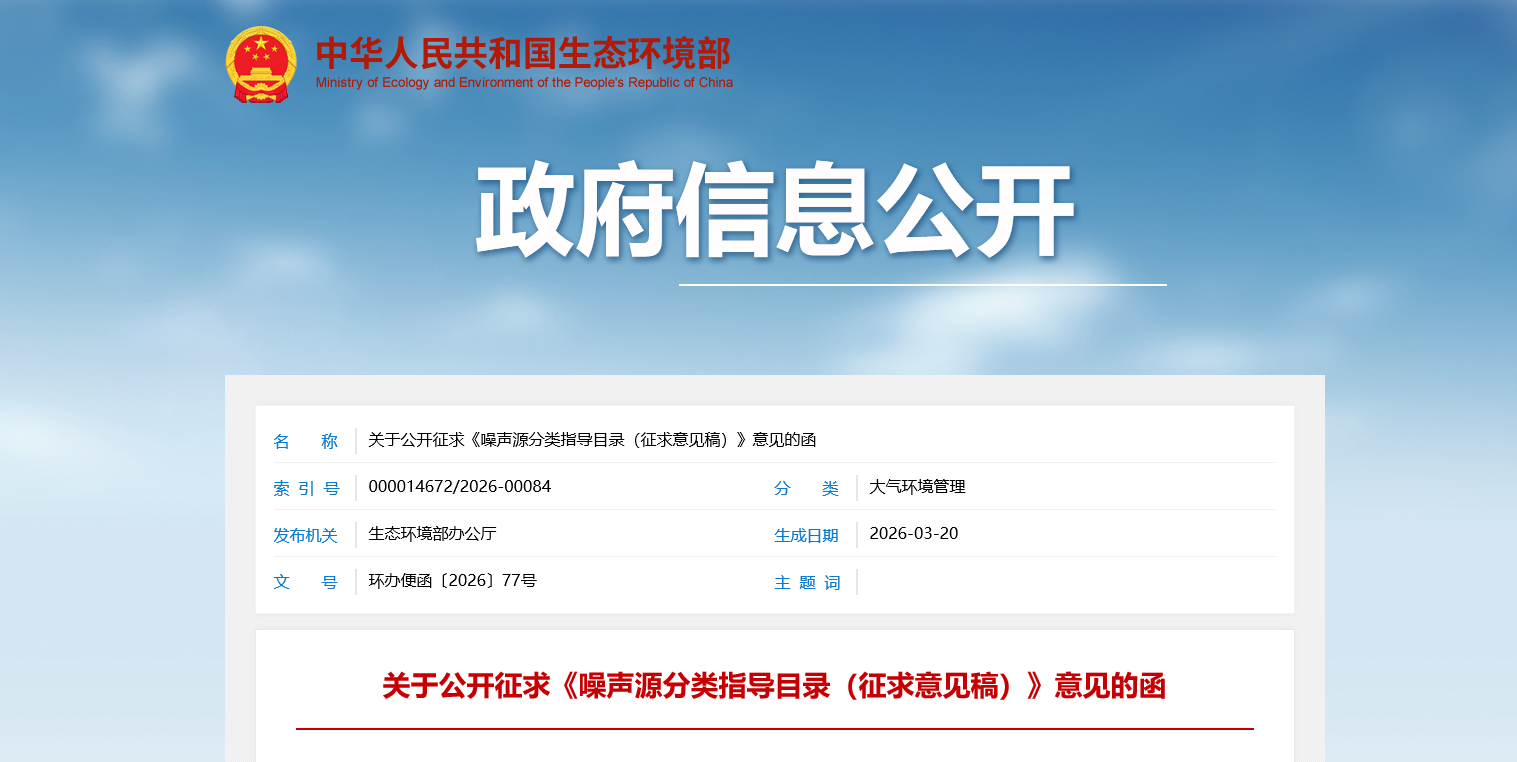 生態(tài)環(huán)境部發(fā)布噪聲源分類(lèi)指導目錄征求意見(jiàn)稿 三級分類(lèi)明晰監管邊界破解噪聲治理難題