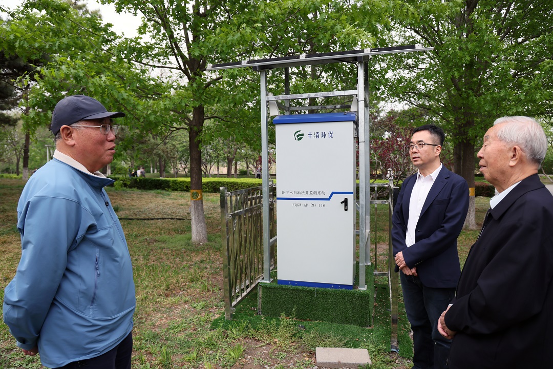 解振華等各位領(lǐng)導聽(tīng)取了地下水團隊各專(zhuān)題技術(shù)負責人對豐臺地下水污染防治試驗區工作開(kāi)展情況的介紹。詳細了解了試驗區構建的以“雙源”監管體系建設為基礎的地下水分區管理體系、地下水環(huán)境監測網(wǎng)、地下水監測超級站、地下水自動(dòng)監測系統、地下水環(huán)境管理信息平臺及天—地一體化探測技術(shù)在地下水中的應用等創(chuàng )新成果和通過(guò)地下水研究中心輻射帶動(dòng)產(chǎn)學(xué)研一體化的進(jìn)展情況;現場(chǎng)參觀(guān)了地下水野外自動(dòng)監測井。