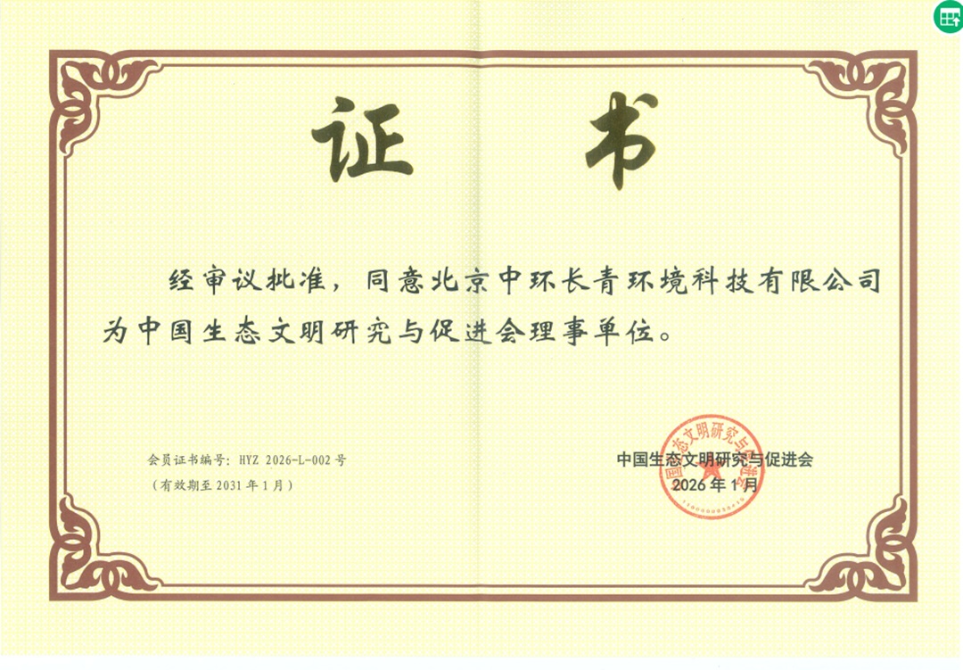 中環(huán)長(cháng)青獲批生態(tài)環(huán)境部中國生態(tài)文明研究與促進(jìn)會(huì )理事單位