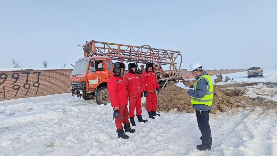面對多重考驗,項目團隊沒(méi)有退縮,而是積極應對,迅速制定嚴寒專(zhuān)項施工方案。在全力推進(jìn)施工的同時(shí),團隊始終將施工質(zhì)量管控放在首位——每一口監測井從鉆探成孔、井管安裝,到濾料填充、洗井作業(yè),所有環(huán)節均嚴格遵循國家規范并進(jìn)行加熱泥漿、加熱止水材料、延時(shí)養護、冬季專(zhuān)用封孔材料等冬季專(zhuān)門(mén)措施,全程由專(zhuān)業(yè)技術(shù)人員監督指導,確保施工質(zhì)量與進(jìn)度雙達標。