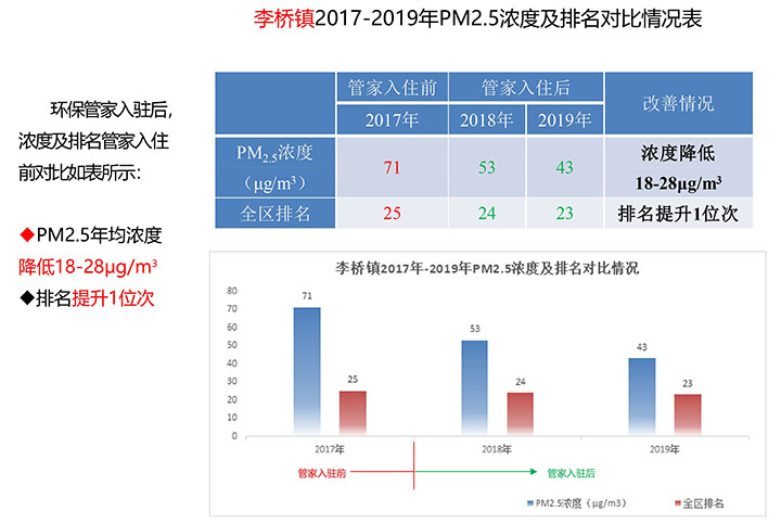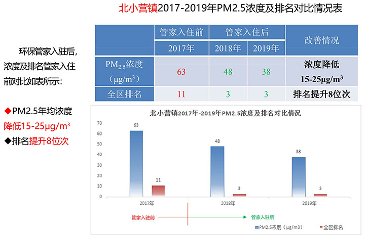 “付出就有成效,專(zhuān)業(yè)所以有效”。在順義區北小營(yíng)鎮,北京中環(huán)長(cháng)青環(huán)保管家入場(chǎng)后;年度PM2.5考核數值在全區排名位順位進(jìn)階了8名排序;年度濃度均值降低15-25μg/m3;在順義區高麗營(yíng)鎮,環(huán)保管家入場(chǎng)后;年度PM2.5考核數值在全區排名位前進(jìn)了11名排序;年度濃度均值降低17-28μg/m3;在順義區李橋鎮,環(huán)保管家入場(chǎng)后;年度PM2.5考核數值擺脫全區排名倒數位置,年度排名均有進(jìn)階;年度濃度均值降低18-28μg/m3;在順義區木林鎮,環(huán)保管家入場(chǎng)后;年度PM2.5考核數值均值降低10μg/m3;