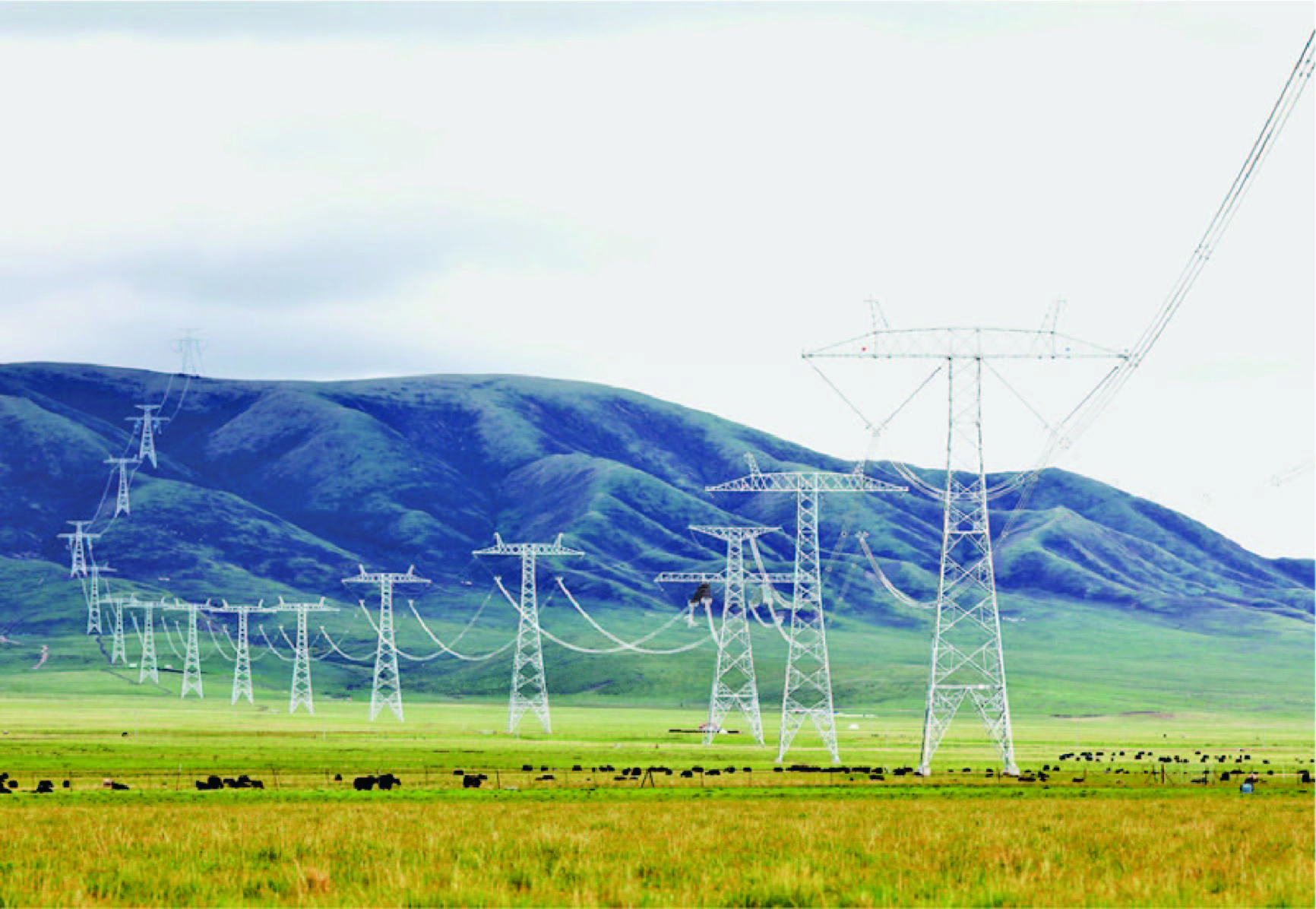 2020年7月15日,世界上首條主要輸送風(fēng)光新能源的青豫特高壓開(kāi)始輸電。源自青藏高原的太陽(yáng)能、風(fēng)能等清潔電力,跨過(guò)崇山峻嶺,源源不斷直送中原大地。圖為2021年6月17日在青海省黃南藏族自治州河南蒙古族自治縣拍攝的青豫特高壓直流工程。新華社發(fā) 謝莉蓉/攝