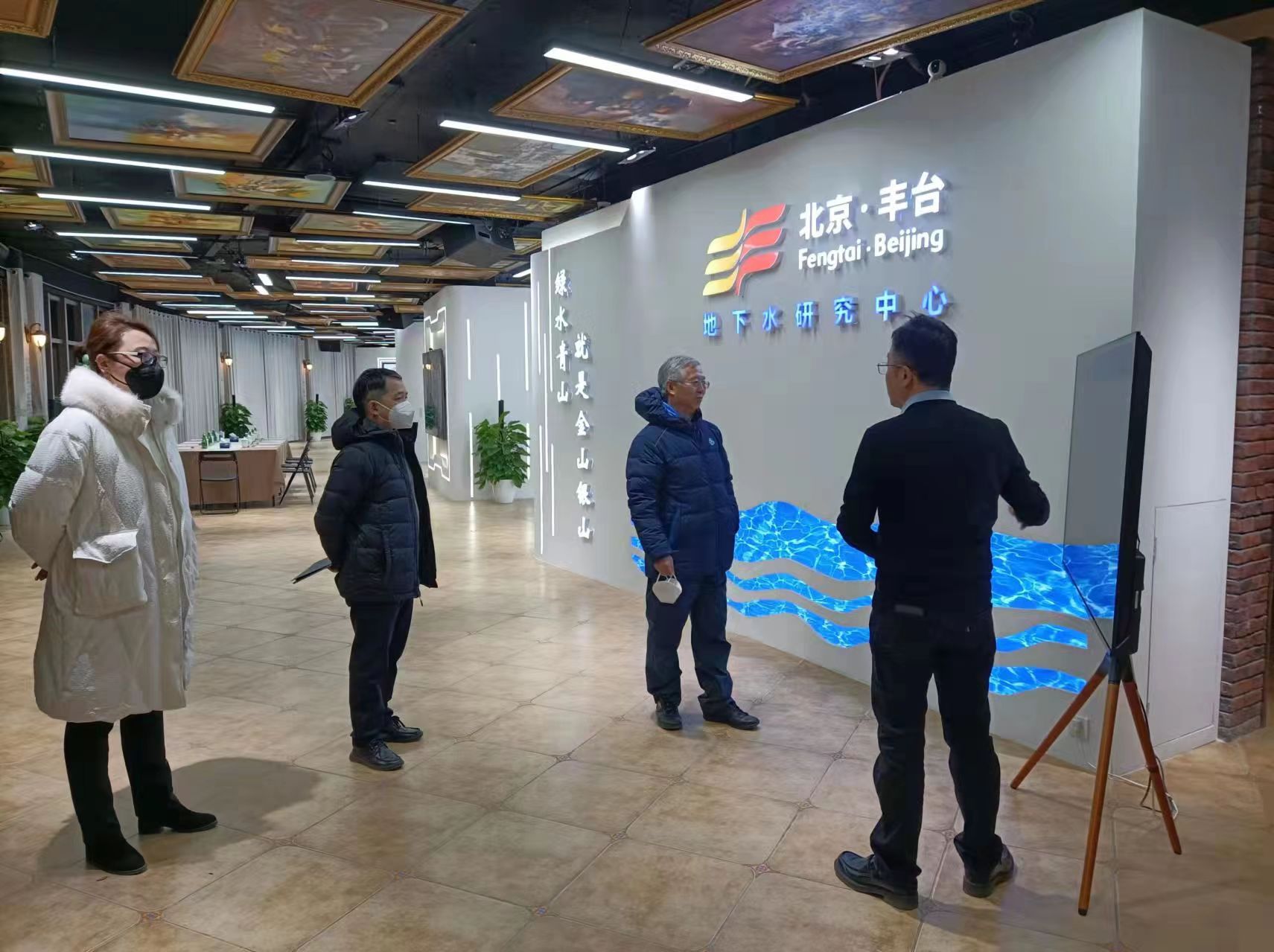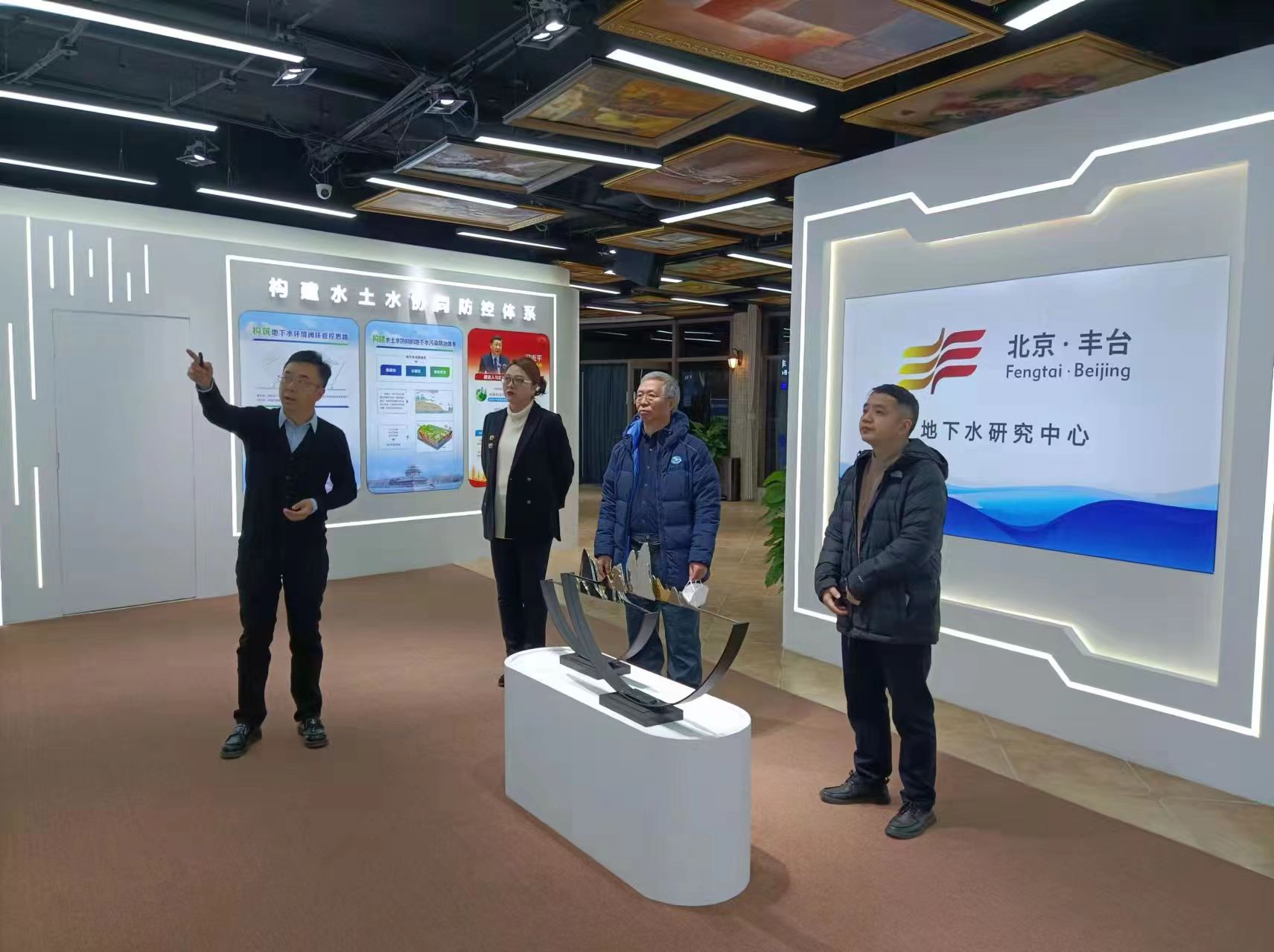 在地下水研究中心展廳,北京中環(huán)長(cháng)青環(huán)境科技有限公司董事長(cháng)穆彬講解了豐臺區地下水研究中心的建設背景、建設歷程、平臺研發(fā)與創(chuàng )新、發(fā)展特色與目標,以及中心建設以來(lái)所取得的成績(jì)。