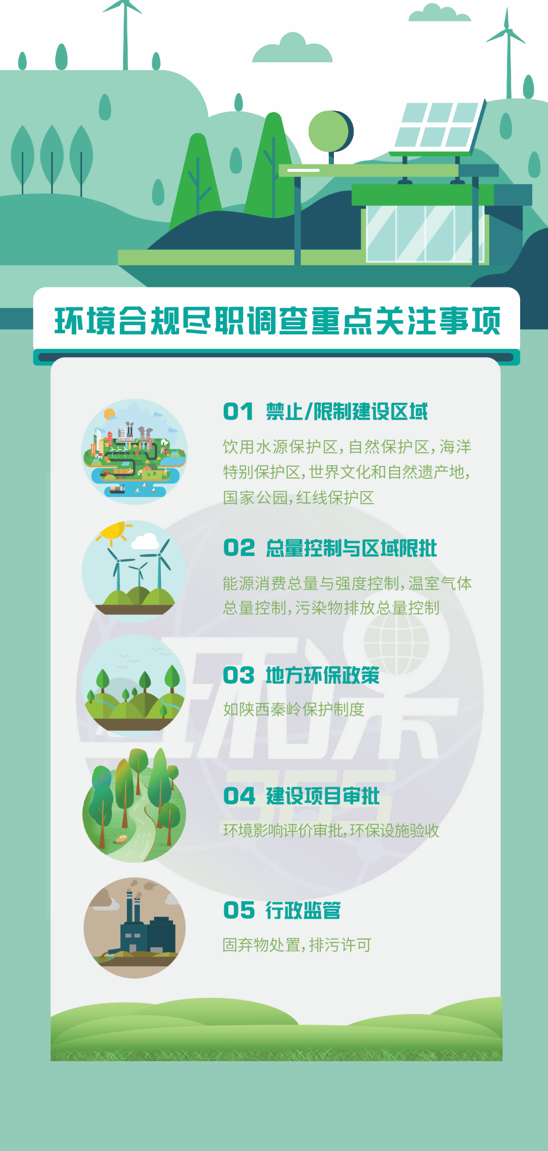 隨著(zhù)近年來(lái)國家環(huán)境保護力度的加大,項目環(huán)境合規性已經(jīng)成為影響項目推進(jìn)的重大風(fēng)險點(diǎn)。在我國碳達峰、碳中和背景以及“能耗雙控”宏觀(guān)形勢下,項目是否符合“環(huán)境友好”標準,已經(jīng)上升到項目決策的重點(diǎn)因素之一,甚至可以是“一票否決”的決定性因素。環(huán)境合規盡職調查正是圍繞項目“環(huán)境友好”展開(kāi)的信息收集、分析、研判、建議的專(zhuān)項服務(wù)工作。